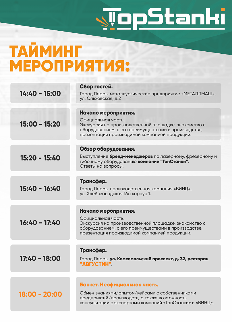 Демонстрация в формате экскурсии на производственных площадках «МЕТАЛЛМАШ» и «ВИНЦ», знакомство с оборудованием, с его преимуществами в производстве, презентации производимой компаниями продукции, состоится 6 МАЯ 2026, в 15.00, в г. Пермь.